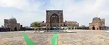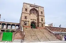 The Jama Mosque is one of the three most famous mosques in Jaunpur, the others being the Atala Mosque and the Lal Darwaza Mosque. Of these it is both the largest and most recent. The Jama Mosque and the Lal Darwaza Mosque are heavily based upon the model of the Atala Mosque. According to Michael S. Dodson the focus of this style is the enormous and visually dominating pishtaq (portal) which obscures the dome behind it.[24] All mosques in this style are arranged around a courtyard with four large gateways facing North, South, East, and West. The most significant of these faces West (towards Mecca) and contains the pishtaq and dome.[25]