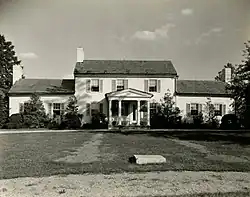 The James Allen House, also known as Scarlet Gate, in Lexington, Kentucky, was the home of writer James Lane Allen. The house, originally a 2-story Federal design, dates from the 1790s,[2] and in the original section numbered rafters are joined with wooden pegs. The south wing of the house had been constructed prior to arrival of the Allen family in 1851, and the north wing was added in the 1930s, over a large room constructed earlier in the 20th century. The James Allen House was listed on the National Register of Historic Places in 1982.[3]
