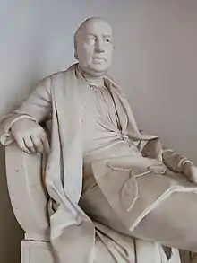He died at his garden home in Madras which was later occupied by Sir Thomas Pycroft became Pycroft Gardens. He married Maria Rheta de la Mabonay on 1766 and they had a daughter Ann Anderson who married merchant Charles Wallace Young (d. 1801 at Palamcottah), a cousin of Dr Andrew Berry (Berry was Anderson's nephew, son of his sister Janet who was married to William Berry). Ann died in 1810 and her memorial was erected by Berry.[26] Anderson's bridge (over the Cooum, now called College Bridge between Moore's and Pantheon roads) and Anderson road (which remains in use, connecting Haddows and Greams Roads) were named after him and a monument to him by Chantrey is installed at St George's Cathedral in Madras.[27] His memorial in the compound of St. Mary's Church had a bust and a magnifying glass which are lost.[28]