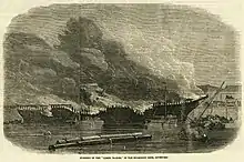 James Baines caught fire on Thursday morning, 22 April 1858 while discharging her cargo in the Huskisson Dock at Liverpool following her only voyage from India. The ship burned down to the waterline. Her remains, including the most of the undischarged cargo, were abandoned as a total loss amounting to £170,000 to her owner James Baines because the ship's insurance policy had expired three days before. The damaged hull was sold to the Liverpudlian shipowner Robert Pace for £1,080, who converted it into a coal barge which is said to have collided with another barge in 1860 at Galway harbour, Ireland. Still mentioned in the Liverpool Ship's Register of 1863 her final fate is unknown. Another reference has it that the ship became a landing stage in Liverpool harbour for the debarking steamer passengers. Capt. Chas. McDonnell, the first and last master of James Baines was broken-hearted following the disastrous end of his fine ship. He retired from naval service and died of pneumonia a few months later in his mother's cottage at Glenariff, County Antrim, Northern Ireland.