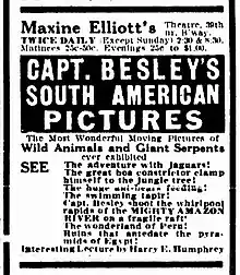 - 1 2 "Besley Expedition After More Films". The Galveston Daily News. Galveston, Texas. 4 October 1914. Retrieved 8 March 2019.