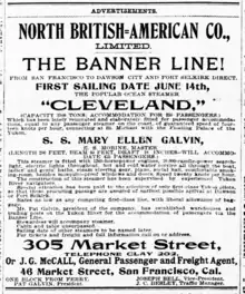 Besley's brother Brian Charles Besley invested in the North British American Trading and Transportation Company, founded by Pat Galvin, a former Helena, Montana Chief of Police and one of the first millionaires in the Klondike gold rush. Capitalized at $3,500,000 (equivalent to $123,116,000 in 2022),[29] the company was organized to provide transportation and trade to the Alaskan gold rush and enjoyed virtually unlimited credit on the Bank of England.[30][31] Besley was hired by the company as accountant and traffic manager. A local newspaper named Besley one of Galvin's "false friends" who had caused Galvin "considerable losses".[32]