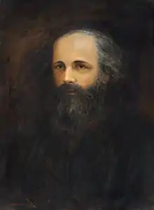 Maxwell was sent to the prestigious Edinburgh Academy.[31] He lodged during term times at the house of his aunt Isabella. During this time his passion for drawing was encouraged by his older cousin Jemima.[32] The 10-year-old Maxwell, having been raised in isolation on his father's countryside estate, did not fit in well at school.[33] The first year had been full, obliging him to join the second year with classmates a year his senior.[33] His mannerisms and Galloway accent struck the other boys as rustic. Having arrived on his first day of school wearing a pair of homemade shoes and a tunic, he earned the unkind nickname of "Daftie".[34] He never seemed to resent the epithet, bearing it without complaint for many years.[35] Social isolation at the Academy ended when he met Lewis Campbell and Peter Guthrie Tait, two boys of a similar age who were to become notable scholars later in life. They remained lifelong friends.[17]