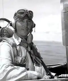 ![]() Lieutenant Commander James D. Ramage in an SBD Dauntless aboard USS Enterprise during World War II | |
