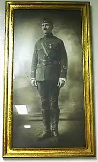 Photo of Col. Rieger in uniform shortly after World War I. This photo hangs inside Rieger Armory, named in his honor.