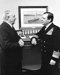 In his memoirs, Holloway III complained that "there has often been a tacit presumption that my father was in a position to advance my career as I gained seniority in the Navy. On the contrary, as a retired officer he had little or no influence over his own future, much less mine."[71] As an example of this presumption, when President Richard M. Nixon approved Holloway III's nomination to succeed Admiral Elmo R. Zumwalt Jr. as Chief of Naval Operations, Zumwalt believed that Nixon acquiesced mainly to avoid overruling the recommendation of his secretary of defense, but that, "In addition, and I really think this was a factor, Mr. Nixon remembered Jimmy's father from his own period of naval service."[72]