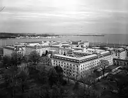 Despite his energetic reforms and personal popularity among the midshipmen, Holloway's three-year tour as superintendent ultimately was too brief to reverse the Naval Academy's entrenched cultural bias against academic achievement.[24] A more durable legacy was the series of yawl races Holloway initiated to promote seamanship and competitive sailing, dubbed the Holloway trophy races after the award for the winning midshipman skipper.[25] Holloway also addressed the dismal living conditions of the enlisted men based at the Academy by upgrading their quarters from trailer parks to a village of Wherry housing units on the north shore of the Severn River. He declared that a midshipman's first lesson must be a concern for enlisted men's welfare and that Annapolis of all places must set the example.[3]