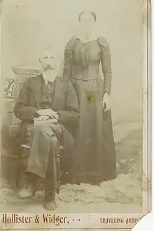 In 1874, Johnson accepted a position on the board of trustees for the University of Arkansas. He held this position until 1883. Johnson was also member of Masonic Fraternity.[18] He moved into a log house in Wesley, Arkansas were he lived for the rest of his life. Johnson also continued to be a physician while his daughter, Kate, studied under him.[19] On June 10, 1883, Elizabeth Johnson passed away. (Although some accounts claim her death to be on August 24, 1884, the date of death on her grave marker is June 1883)[20][21] Johnson applied for his Civil War veterans pension in 1891.[22] In 1893 Johnson would marry Jennie A. Mullins. She would die on March 5, 1917.[23]