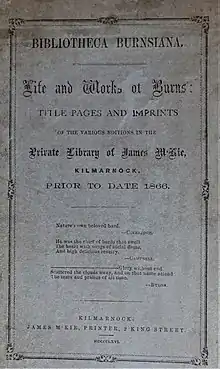 • M'Kie, James (1886). Bibliotheca Burnsiana. Life and Works of Burns ... in the Private Library of James McKie. Kilmarnock : James M'Kie.