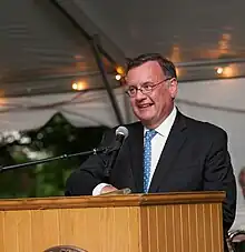 James Patrick Moore Jr. (born 1953[1] in Illinois) is an author,[2] professor,[3] television commentator,[4] lecturer,[5] corporate executive,[6] nonprofit CEO, and former senior government official.[1] Today, he serves as the founder, President and CEO of the Washington Institute for Business, Government, and Society headquartered in Washington, D.C. Just prior to launching the Washington Institute, he taught international business, corporate ethics, and leadership and management at the McDonough School of Business at Georgetown University while sitting on a number of corporate and nonprofit boards both in the United States and overseas. He also served as Executive Director of the Business and Public Policy Initiative at the McDonough School of Business at Georgetown University.