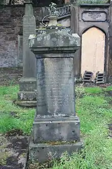 He died at his residence, 43 Inverleith Row, on 27 March 1864. He was buried on 1 April in the graveyard of St Cuthbert's Church, Edinburgh.[3] His grave lies at the west end of the north extension and is beginning to erode.