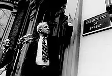 As Energy Secretary, Schlesinger launched the Department's Carbon Dioxide Effects and Assessment Program shortly after the creation of that department in 1977. Secretary Schlesinger also oversaw the integration of the energy powers of more than 50 agencies, such as the Federal Energy Administration and the Federal Power Commission.[11] In July 1979, Carter replaced him as part of a broader Cabinet shakeup.[11] According to journalist Paul Glastris, "Carter fired Schlesinger in 1979 in part for the same reason Gerald Ford had—he was unbearably arrogant and impatient with lesser minds who disagreed with him, and hence inept at dealing with Congress."[12]