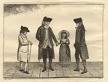 Engraving from 1786 in John Kay's Edinburgh Portraits: James Rae (left) in conversation with Dr. William Laing and Dr. James Hay, later Sir James Hay of Smithfield