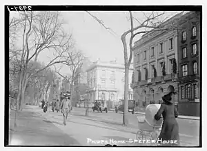 The James Speyer House was a mansion located at 1058 Fifth Avenue, on the southeast corner of 87th Street, in the Upper East Side of Manhattan, New York City. It was constructed for James Speyer, a New York City banker. It was a reticent classicizing block of three stories and a set-back attic story over a sunk basement lit by a light well. It had five bays on the avenue, where the upper two floors were linked by a colossal order of pilasters, and seven bays on the side street.[1]