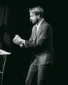 In December, he and fellow ministers Marte Mjøs Persen and Anniken Huitfeldt, and Crown Prince Haakon visited the United States to promote Norwegian interests notably regarding "War, the Arctic, offshore wind, contemporary art and Christmas trees".[11] However, like Persen, he returned to Norway earlier then planned.[12]