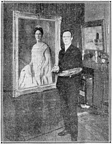 ![]() J.A.C. Goedhart with portrait of Queen Wilhelmina commissioned by city of Hulst, 1930 | |