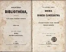 • Doba prwního člowěčenstwa, aneb, Auplnější wylíčení stawu prwního pokolení lidského, 1846 (The Age of the First Man, or, A More Complete Portrayal of the State of the First Generations of People; except for using w and au one of the first Czech books to use a more modern orthography and also less luxuriant style which was typical of the first phase of the Czech National Revival)