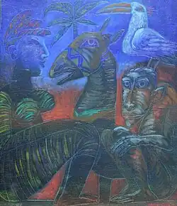 His work is now considered a vivid element of the post-world-war South African art scene[1] generating a European view to traditional South-African culture.[2] Illustrator of children's books and periodicals. Hallmarks of his career are a consignment for the painting "Gift in Africa" as gift from the Flemish Government to South African President Nelson Mandela (1997), an exhibition of paintings for the Millennium Exhibition in Cape Town (1999) and an exhibition of oil paintings in the South African pavilion at EXPO 2000 in Hannover, Germany (2000).[3]
