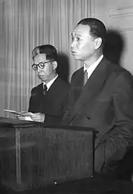 Taiwan was under Japanese rule from 1895 to 1945. After the Korean War, the Japanese government during the Yoshida Cabinet lost its hope of establishing substantial relations with Peking, and instead began taking into consideration the prospect of signing a peace treaty and establishing diplomatic normalization with Taipei. Japan at the time also carried the debt of gratitude to Nationalist China, as Chiang Kai-shek made the announcement of "returning virtue for malice" (uramini mukuiruni tokuwo motte suru) and repatriated all the Japanese troops.[2] As a result, on 25 April 1952, according to the Yoshida Letter, "the Japanese government has no intention to conclude a bilateral treaty with the Communist regime in China", and later the Japan-ROC Peace Treaty was signed.[3] During this time in the early 1950s, Japan was put under pressure by the US to not recognize the newly established PRC which was at war with the US in Korea, and instead recognized the government of ROC led by Chiang Kai-shek as the legitimate government of China. Tokyo then signed a peace treaty with Taipei as a proof to this close tie.[4]