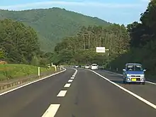 Route 396 heading south up to Kotoge Pass. Notice the added passing lane. Slower traffic is instructed to keep left.