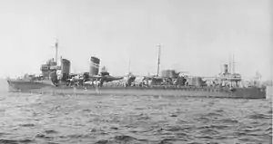 Miyuki (深雪, ”Deep Snow”)[1] was the fourth of twenty-four Fubuki-class destroyers, built for the Imperial Japanese Navy (IJN) following World War I. When introduced into service, these ships were the most powerful destroyers in the world.[2] They served as first-line destroyers through the 1930s, and remained formidable weapons systems well into the Pacific War.