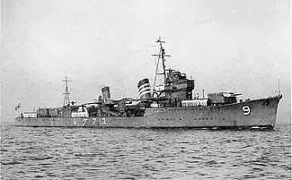 Yūgure (夕暮, ”Twilight”)[1] was the sixth and last Hatsuharu-class destroyer, built for the Imperial Japanese Navy under the Circle One Program (Maru Ichi Keikaku). Three were laid down in JFY 1931 and the next three in JFY 1933.[2]