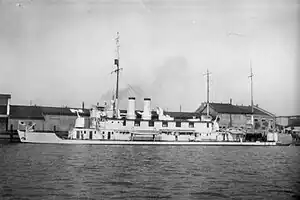The ship was initially armed with two 80 mm (3.1 in)/28 cal. guns and six 7.7mm machine guns.[2]