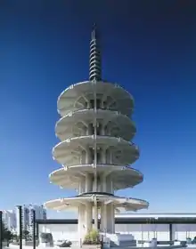Its focal point is the Japan Center, which opened in 1968,[6] and is the site of three Japanese-oriented shopping centers. The San Francisco Peace Pagoda, also at the Japan Center, is a five-tiered concrete stupa designed by Japanese architect Yoshiro Taniguchi and presented to San Francisco by the people of Osaka, Japan.