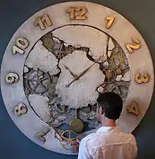 • "Memento" is a combination of sculpture, painting and monumental clocks.[8] The cycle "Memento" is a development of the painter's series "Frescos" realized by the creator in the 90s. The clocks were displayed in many galleries and museums (among others, Zachęta, and in the Diocesan Museum in Pelplin).