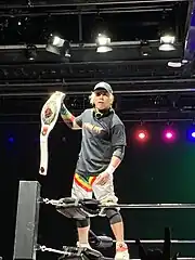 Another signature event in which he competed is the Gate of Destiny, making his first appearance at the 2017 edition from November 3, where he teamed up with Over Generation (Gamma, Kaito Ishida and Mondai Ryu) in a losing effort against K-ness, Misterioso Jr., Shachihoko Boy and Yosuke Santa Maria.[16] Lee was part of the MaxiMuM stable and teamed up with his stablemates Kaito Ishida and Naruki Doi and the Mochizuki Dojo (Masaaki Mochizuki, Shun Skywalker and Yuki Yoshioka) in a losing effort against Natural Vibes (Genki Horiguchi, Kzy and Susumu Yokosuka) for the Open the Triangle Gate Championship one year later at the 2018 edition of the Gate of Destiny.[17] At the 2019 event, he competed again for the Open the Triangle Gate Championship alongside hi stablemates Dragon Kid and Naruki Doi, coming up short again against Strong Machine F, Strong Machine G and Strong Machine J.[18] At the 2021 edition, Lee won a nine-person battle royal also involving Ho Ho Lun, Yosuke Santa Maria, Strong Machine J, Mondai Ryu, Super Shisa, Punch Tominaga, Konomama Ichikawa and Shachihoko Boy.[19]