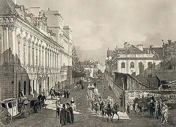 His brother Joachim Daniel (1688–1754)[9] served at first in the army of the Republic of the Seven United Netherlands,[9] before he changed 1705 as lieutenant into the Saxon army.[9] He took part as a captain in the first siege of Stralsund 1711–12 during the Great Northern War.[9] At the end he was contemporaneously royal Polish colonel (since 1736), electoral Saxon major general (since 1746),[9] superintendent of the Saxon building authority in Poland (since 1721),[9] with the title director (since 1736),[9] remunerated for each function separately.[120] His primary obligation was to supervise the baroque development of the city of Warsaw.[9] Vital was his responsibility for the extensive merrymakings of the Saxon court at Warsaw.[9]
