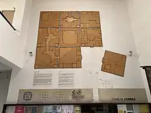 The centre is an analogue of the original city plan of Jaipur, drawn up by Maharaja Jai Singh II, a scholar, mathematician, and astronomer, in the mid-17th century. His city plan, guided by the Shilpa Shastras, was based on the ancient Vedic mandala. Due to the presence of a hill, one of the squares was transposed to the east, and two squares were amalgamated to house the palace. Maharaja Jai Singh had one of the squares moved due to the presence of a hill in his design of the Jaipur city plan. Correa invoked the original mandala while innovatively using one square as the main entrance.[7]