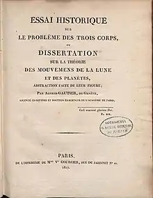 He studied astronomy at the University of Geneva, then at the University of Paris. He was awarded a doctorate in celestial mechanics in Paris in 1817; his thesis was entitled Historical essay on the problem of three bodies. His academic advisors were Laplace, Lagrange and Legendre. In 1818 he worked in England with Herschel.[2]