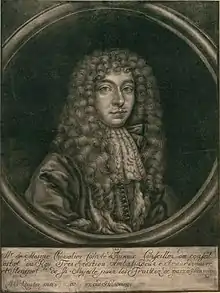 Portrait as member of the order of the Holy Spirit, painted by Nicolas de Largillière, engraved by Cornelis Vermeulen 1691