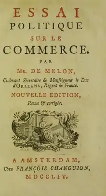 Jean-François Melon (French: [məlɔ̃]; 1675–1738) was a French political economist, considered one of the precursors of the Physiocracy movement. According to István Hont, his Political Essay upon Commerce was the most widely available defense of luxury in France in the early 18th century.