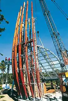 However, based on a competition for designing the centre dated to 1991, the work was assigned to Renzo Piano and it was constructed between 1993 and 1998.[6] The inaugural cultural director was Emmanual Kaserhou and the museum curator Susan Cochrane.[1] The project was quite controversial because of its luxurious, expensive and monumental nature.[7] The cost of maintenance were also very high, excessive in regards to New Caledonia's means, and the museum was described as empty.[8]
