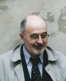 Jean Le Gac (born May 6, 1936, in Alès, France)[1] is a French conceptual artist, painter, pastelist, photographer using mixed media,[2] frequently video or photography and text to document his investigations and sketched scenes. His poetic photographic interventions in which he is most often the main subject are accompanied either by typed text describing the underlying story in the artwork or handwritten notes in the art piece itself.[3] Member of the Narrative art movement[4] since the seventies, Le Gac ofttimes tells a story about an imaginary character that viewers can easily identify with the artist himself.[5] He calls it a “metaphor for painting."[6] Le Gac also uses the artist's book as a central part of his art practice.[7] Le Gac is a Professor and lecturer at Institut des hautes études en arts plastiques.