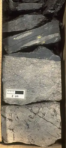 One element that is absolutely essential for successful exploration and development is the presence of a stratigraphic unit that is capable of hydrocarbon generation. The presence of an excellent quality Upper Jurassic source rock in the Jeanne d'Arc Basin was first identified in well cuttings from the Egret K-36 exploration well.[24] This Kimmeridgian package of organic-rich, thinly interbedded and finely laminated marlstones and calcareous shales was formally defined as the Egret Member of the Rankin Formation.[14] These economically important beds have been demonstrated to be present across the Jeanne d'Arc Basin.[25][26][27] Microscopic analyses identified abundant bituminous/liptinitic detrital material and a lack of terrestrial organic matter.[26] These characteristics indicate that the Egret Member is dominated by marine-derived Type II organic matter deposited under reducing conditions.[28] Hydrocarbons trapped throughout the Jeanne d'Arc Basin were mainly sourced from the prolific Egret Member.[28]