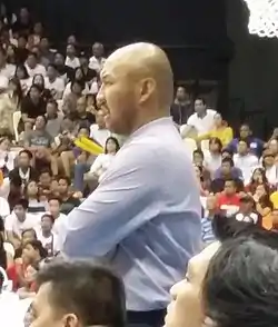 On April 29, 2014, Cariaso was named as the new head coach of Barangay Ginebra, replacing Ato Agustin.[2] Prior to this, he has no high-level head coaching experience. In fact, he has little coaching experience apart from San Mig Coffee, joining the team in 2011, one year after retiring as a player, to assist his former coach at Alaska, Tim Cone. At San Mig, he emerged as the top assistant, often taking over the reins when Cone was ejected, or when the team was getting blown out and the American coach wanted to send a message to his players.[3] His tenure as coach of the Gin Kings did not produce much success, as the team failed to go beyond the quarterfinal rounds in the 2014 Governors' Cup and in the 2014–15 Philippine Cup. Moreover, the triangle offense system he uses did not sit well with the players. At the end of their Philippine Cup campaign, he was relieved of his coaching duties and was replaced by Ato Agustin. He still has one year and two conferences left in his contract, which was bought out, paving the way to his return to Alaska as assistant coach and camp director.