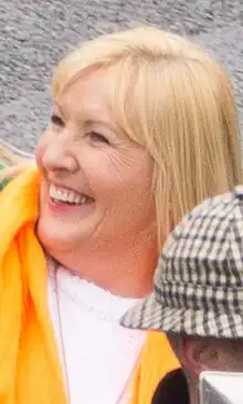 Gibney's most prominent role is her portrayal of Cathy Brown, the daughter of Agnes Brown, played by her real-life husband, Brendan O'Carroll, a part she began playing in the 1990's in the original Mrs Browne, and subsequently the BBC sitcom Mrs. Brown's Boys since 2011.[7] She also appeared as Cathy in the film adaption Mrs. Brown's Boys D'Movie and the talk show All Round to Mrs. Brown's between 2017 and 2020.[8][9] Gibney and O'Carroll reprised their roles as the characters in the Netflix film A Madea Homecoming (2022).[10]