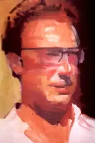 Ross's painting style has been influenced by Abstract Expressionism, particularly the work of Willem de Kooning and Richard Diebenkorn. This influence is revealed in his bold use of color and his expressive, experimental handling of pigment. His painterly style utilizes a technique borrowed from Francis Bacon (mild distortions) but, as seen in the Portrait of Carlo Bianchi, it also references photography and computer imagery. Ross has also been influenced by Umberto Coromaldi (Rome 1870-1948, Telemaco Signorini (Florence, 1835–1901), and most recently, Domenico Morelli (Napoli, 1823–1901).