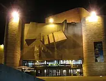 The Jerusalem Theatre (Hebrew: תיאטרון ירושלים, a.k.a. The Jerusalem Centre for the Performing Arts) is a centre for the performing arts in Jerusalem. The theatre opened in 1971.[1] The complex consists of the Sherover Theatre, which seats 950, the Henry Crown Symphony Hall (home of the Jerusalem Symphony Orchestra) with 750 seats, the Rebecca Crown Auditorium, with 450 seats, and the Little Theatre with 110 seats.[1] Changing art exhibits are held in the main foyer and other spaces in the building, and a restaurant and bookshop operate on the ground floor.