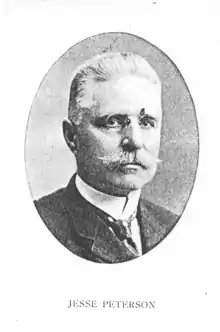Jesse Peterson (October 1, 1850 - October 22, 1921),[1] was an American industrialist and politician from Lockport, New York. In 1886, Jesse Peterson, along with Henry G. Cordley, and Charles E. Folger, started the United Indurated Fibre Company. By 1893 the company was incorporated under New Jersey laws, with the factory and general office in Lockport. About 300 hands are employed in the manufacture of household articles from the indurated fibre, the basis of which is wood pulp.[2] In addition to the United Indurated Fibre Company, Jesse Peterson was the President of the Buffalo Warehouse & Distributing Company, Owner of the Cascade Pulp Mills, Director and Vice President of the Lockport Water & Electric Company[3][4] and an associate of Peterson & Sons.
