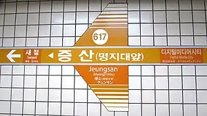 Jeungsan Station is a railway station on Line 6 of the Seoul Subway. Its alternative name is Myongji University Station due to the proximity to Myongji University.[1][2]