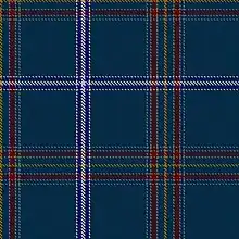 After the debut of the Shalom Tartan, Rabbi Mendel Jacobs and Brian Wilton from the Scottish Tartans Authority designed another Jewish tartan in 2016. Jacobs was inspired by tartans for other ethnic and religious minorities in Scotland, such as a Sikh tartan and a Polish tartan.[2] This second tartan has blue and white lines, as does the Shalom Tartan, to integrate both the flags of Israel and Scotland. An additional line in gold stands for the Ark of the Covenant, a silver line stands for the Torah, and a dark red line represents the wine of the Kiddush.[1] Both tartans are kosher: they are made of only wool to adhere to the law of shatnez, which prohibits the mixing of wool and linen.[1][3]