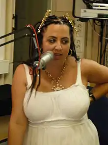 Jewlia Eisenberg (1970/1971 – March 11, 2021) was an American singer, composer, bassist, educator, and cantor. As founder and bandleader of Charming Hostess she coined the term "Nerdy-Sexy-Commie-Girly"[1] to describe her genre of music which spans an eclectic range of styles.
