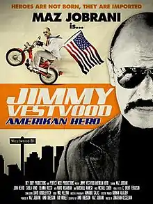 Jimmy Vestvood: Amerikan Hero is a 2014 comedy film directed by Jonathan Kesselman and written by Amir Ohebsion and Maz Jobrani. The film stars Maz Jobrani, John Heard, Deanna Russo, Sheila Vand and Marshall Manesh. The plot follows an Iranian who wins the Green Card lottery and moves to Los Angeles with his mom to pursue his dream of becoming an American hero.