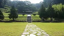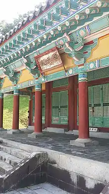 Gilsangsa, or Shrine Gilsang, was built under the mountain Taeryeongsan (태령산; 胎靈山) where the tae (; ; refers to tissues such as placenta or umbilical cord) of General Kim Yu-sin was buried.[2][3] Ever since the Silla period, memorial services were held there by the national government. Since the reign of Taejong of Joseon, they were also held by the local government.[3][6][7] The shrine fell into ruin during the Japanese and Qing invasions.[5]