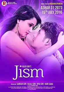Jism is a 2016 Nepalese romantic drama film directed by Raju Giri. The lead roles are played by Nepalese teenage actress Archana Paneru, who aspires to a career as a porn star, and Surendra Budhathoki; it was the first film role for both.[2][3][4]