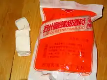 Jiuqu, also simply known as qu[lower-alpha 1] is a type of dried fermentation starter used in the production of traditional Chinese alcoholic beverages.[2] The word jiuqu specifically refers to a type of yeast (; ; ) used to make alcohol (; jiǔ) such as huangjiu (cereal wine), baijiu (distilled spirits) and jiuniang (alcoholic rice pudding).